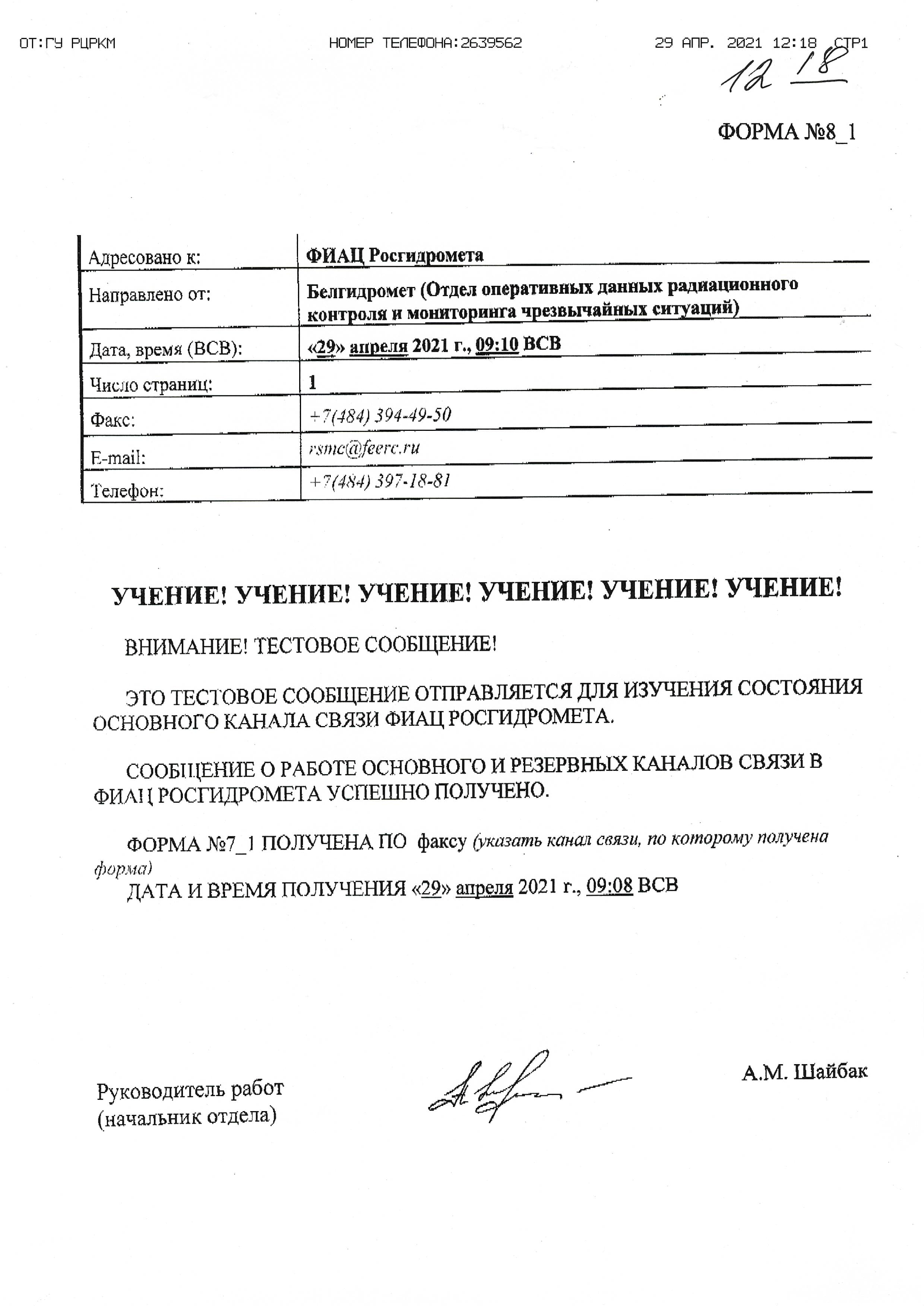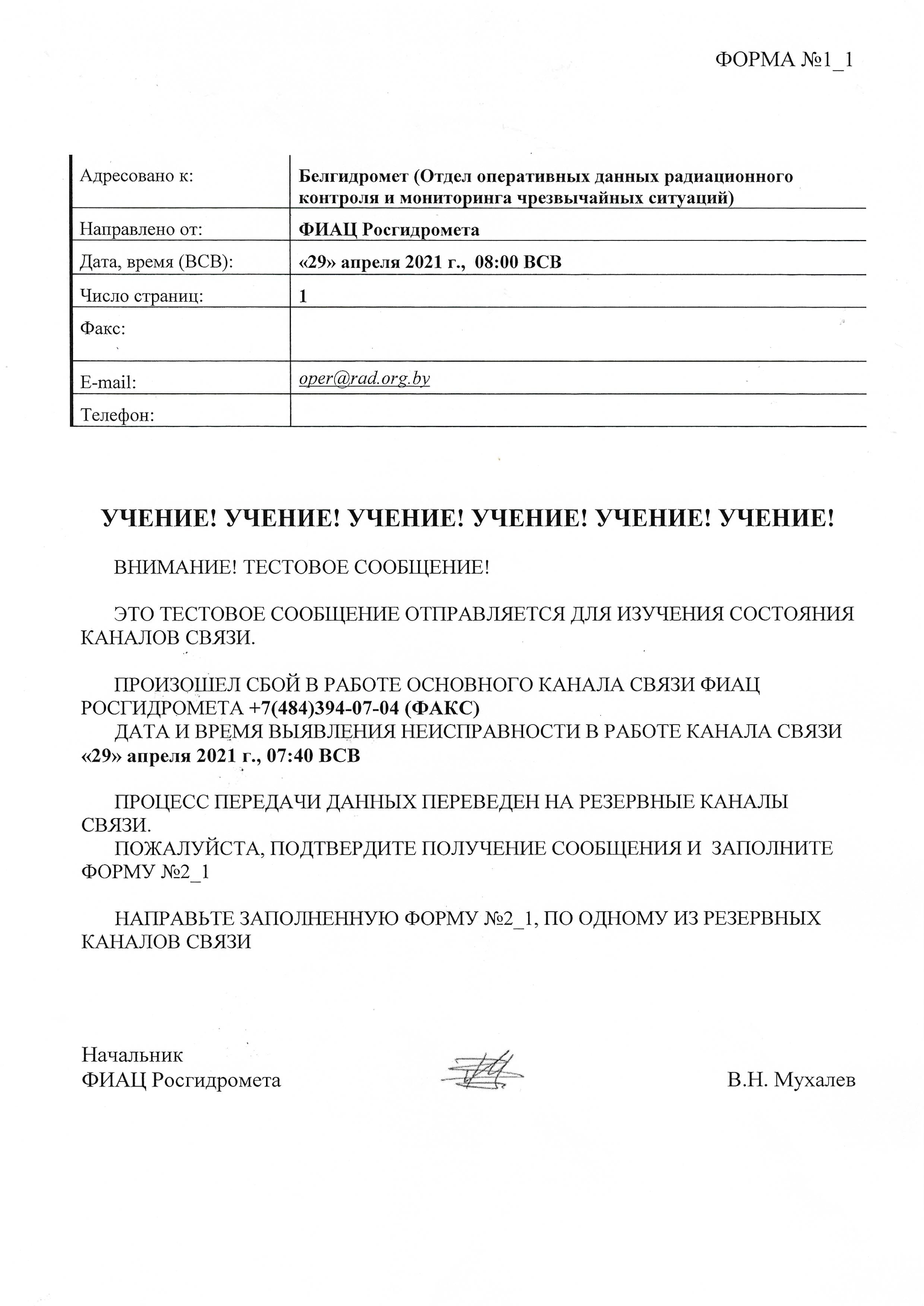 1. Учение по теме «Информационное взаимодействие и обмен данными между Белгидрометом и ФИАЦ Росгидромета в условиях потери электропитания на одной из сторон с отработкой практических навыков по использованию доступных каналов связи в оперативном режиме»