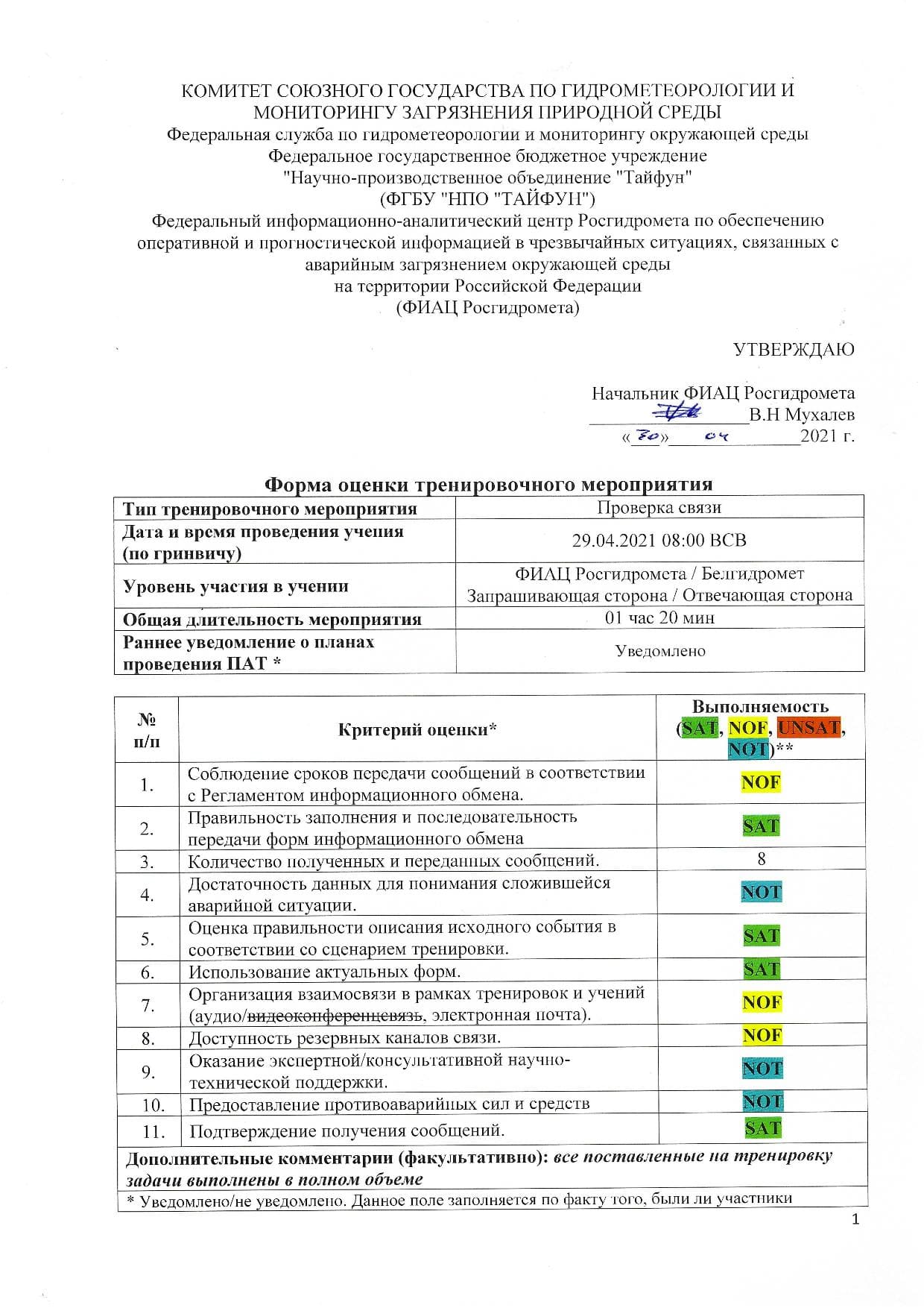 Основание для проведения тренировки: «ПЛАН-ГРАФИК проведения тренировочных мероприятий с участием ФИАЦ Росгидромета и Белгидромета в 2021 году».